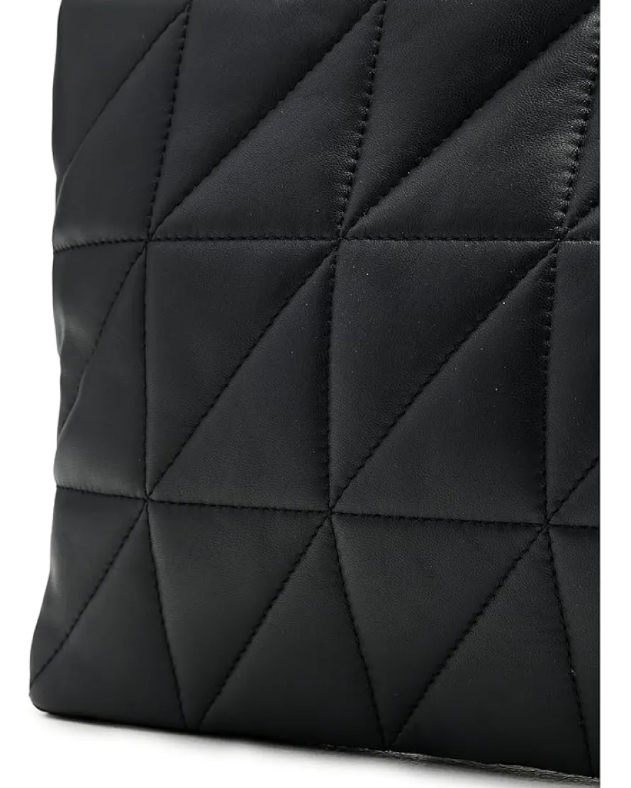 - Square quilt-stitch design on front.