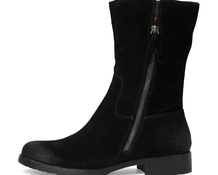 - The Sofft® Betty is a casual mid-calf boot with an outside functional zipper and flexible outsole. Featuring waterproof leather upper, the equestrian boot has round toe shape and stacked block heel.