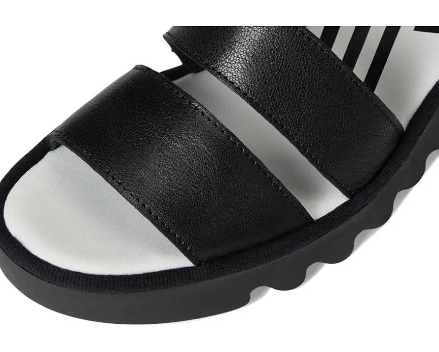 - The rubber outsole with a rounded toe shape and heel to toe padded insole make this FLY LONDON® BEXY575FLY sandal comfortable for walking. Designed with an adjustable hook-and-loop strap, the footwear offers flexible ease of movement with genuine leather upper and lining construction.