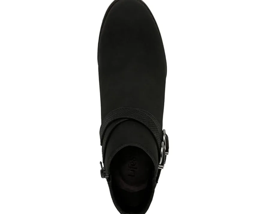 - Step into chic comfort with LifeStride® Blaire! Elevate your style with these ankle-high beauties, featuring a sleek faux leather upper and sophisticated buckle design. The pointed toe and side zippered closure offer a modern, elegant touch, while the polyester lining and foam insole ensure all-day comfort. Perfect for any occasion, the synthetic rubber outsole provides durability and traction.