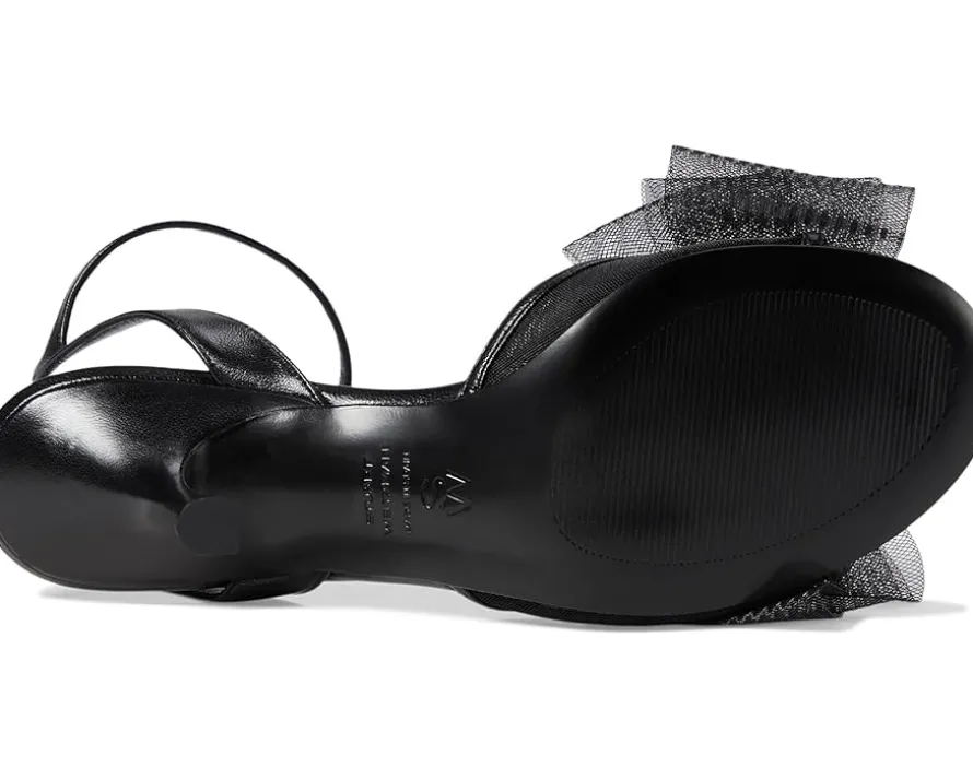 - Luxe layered bow exudes the charming beauty of the Stuart Weitzman® Blushing Bow 75 San. The sandal features nylon upper with buckle adjustable ankle strap closure and stiletto heel for added lift.