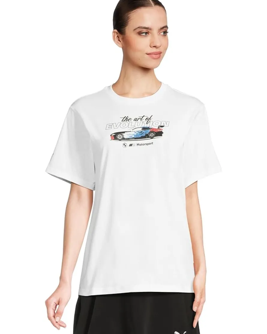 - Show your passion for racing choosing this relaxed fit PUMA® BMW M Motorsport Graphic T-shirt, crafted from premium fabric for maximum comfort and durability. Easy to care for and perfect for everyday wear, it blends athletic style with the prestige of BMW M Motorsport. A comfy, non-restrictive fit that allows freedom of movement. It has a crew neckline, short sleeves, and a straight hem.