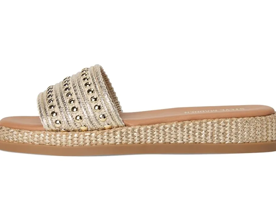 - The Steve Madden® Boardwalk sandals offer a comfortable slide design with a platform for added style. The open square toe adds a touch of sophistication. Perfect for any casual occasion, these slip-on sandals will elevate any outfit while keeping you comfortable all day. These come crafted with a cotton upper, synthetic rubber lining, and a comfortable rubber insole.