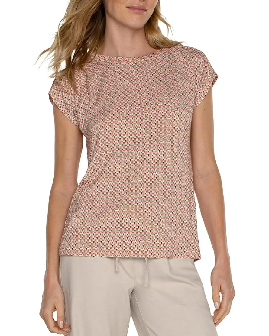 - Crafted in a premium lightweight jersey knit fabric, the Liverpool™ Los Angeles Boat Neck Dolman Jersey Knit Top with Shoulder Pleats exudes a sophisticated and effortless style. The pull-on style top features a flattering boxy silhouette, crew neckline, short sleeves with refined shoulder sleeves, and an attractive complex multi-geo pattern.