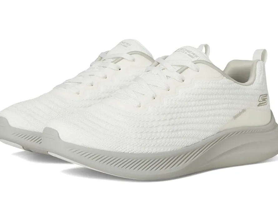 - Pair up with athletic style and comfort wearing the BOBS from SKECHERS® Bobs Moda Flex – Mellow Dawn shoes. These fashionable lace-up sneakers feature a textured fly knit mesh upper with a cushioned Skechers Memory Foam insole for all-day comfort. Made with 100% vegan materials, these low-top shoes are a must-have for your footwear collection.