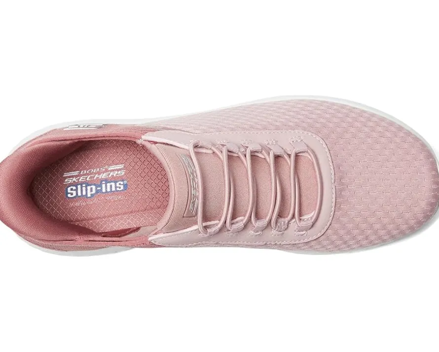 - The BOBS from SKECHERS® Bobs Squad Chaos – In Color Hands Free Slip-Ins sneakers are sure to be a go-to wardrobe essential. The shoe features elasticized lace-up panel, round toe design, and brand detailing on the left chest. Crafted from engineered knit upper.