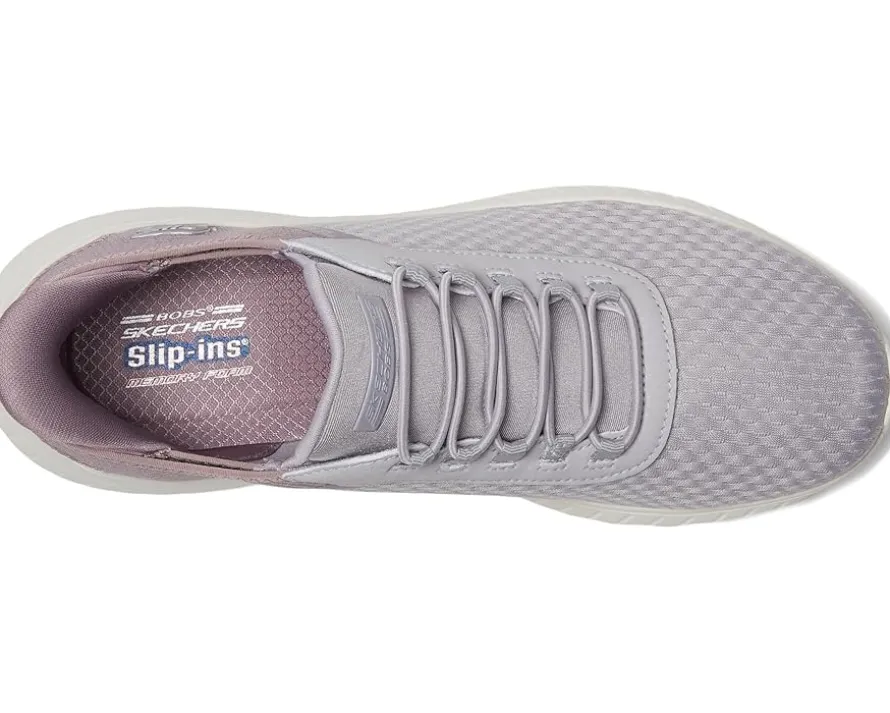 - The BOBS from SKECHERS® Bobs Squad Chaos – In Color Hands Free Slip-Ins sneakers are sure to be a go-to wardrobe essential. The shoe features elasticized lace-up panel, round toe design, and brand detailing on the left chest. Crafted from engineered knit upper.