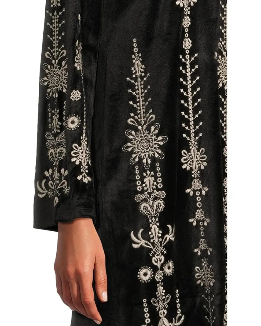 - Chic and timeless, the Johnny Was® Bounce Velour Kimono Sleeve Dress – Marik stuns with intricate metallic embroidery that catches the light with every move. Its relaxed silhouette and luxe texture make it the perfect piece for effortlessly elegant evenings.