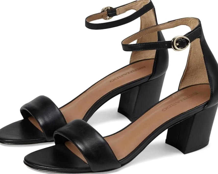 - A supportive backstrap design gives the Bernardo® Bowie a modern edge with adjustable buckle closure. The footwear features leather upper construction with block heel and open almond toe silhouette.