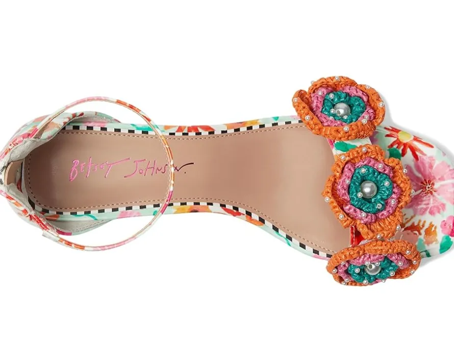 - Perfect for any fashionista, the Blue™ by Betsey Johnson Brandee heels are sweet and girly with their flower embellishments. The adjustable ankle strap ensures a perfect fit. These heeled sandals have a faux leather upper, insole, and lining.