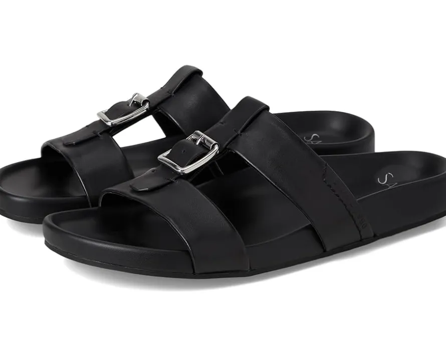 - Buckle up to add the perfect amount of attitude to any ensemble choosing the Franco Sarto® Braxton Slides. Crafted with leather or suede upper, faux leather lining, and EVA insole. The slip-on style is adorned with metallic buckle detailing and square toe design.
