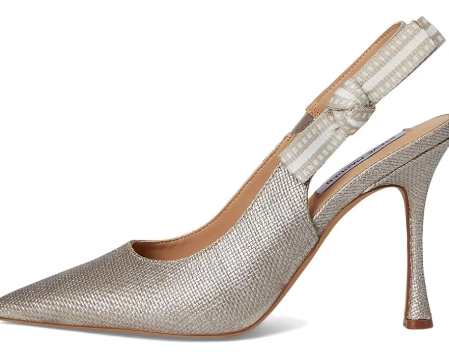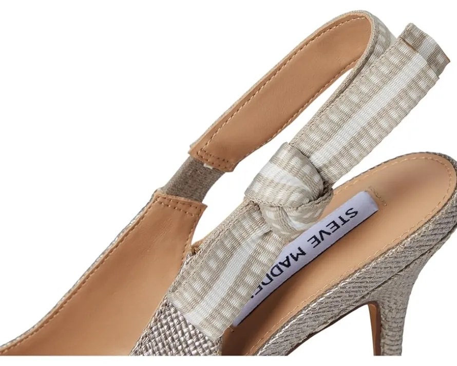- Complete your evening look with a touch of class and elegance donning the Steve Madden® Bri Heels. Framed with a pointed toe and an hourglass heel, the shoes display a sheer textile upper with intricate cut-out detailing throughout, a synthetic lining, and a lightly padded insole. What enhances the beauty of these heels is the slingback ankle strap with a bow accent at its side.