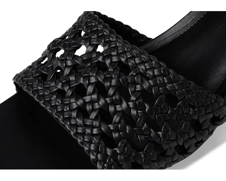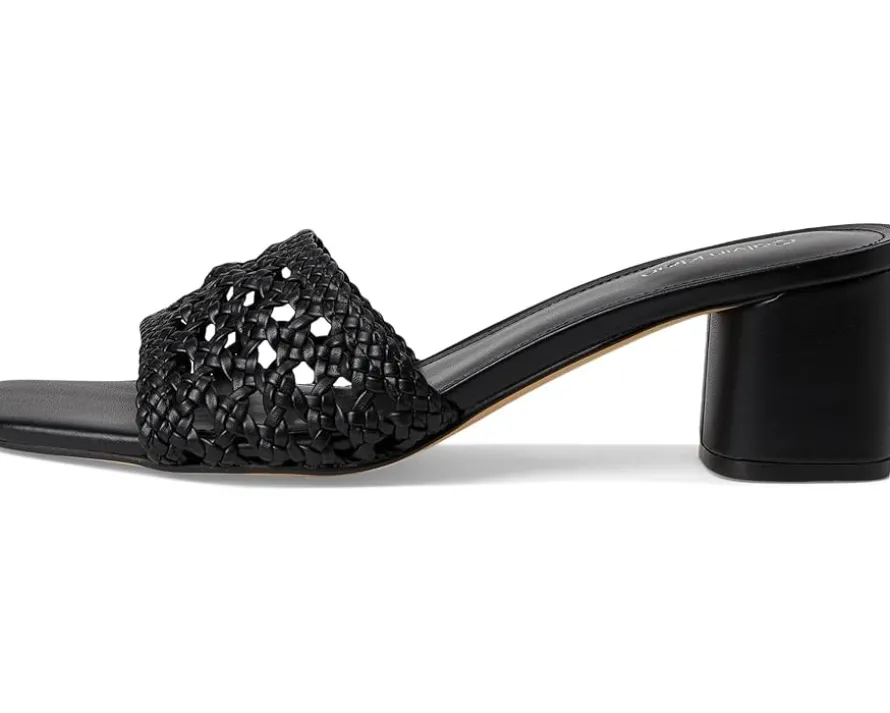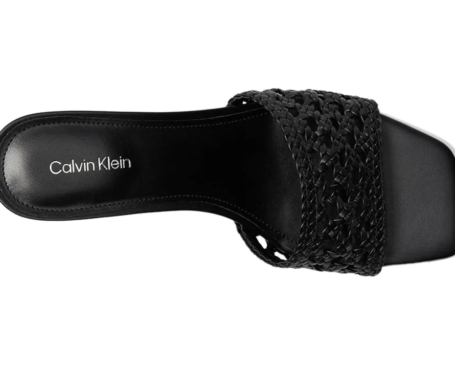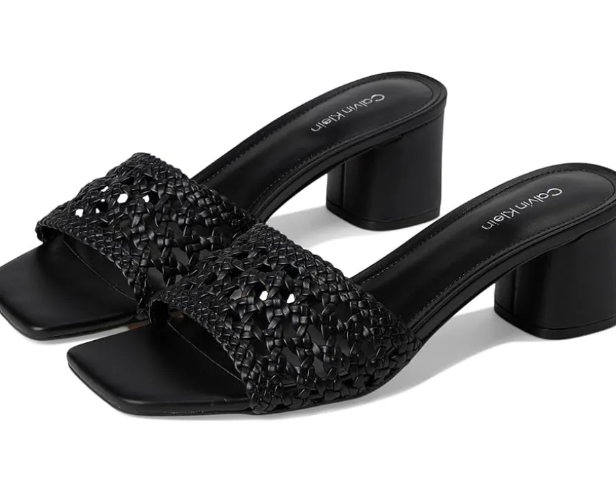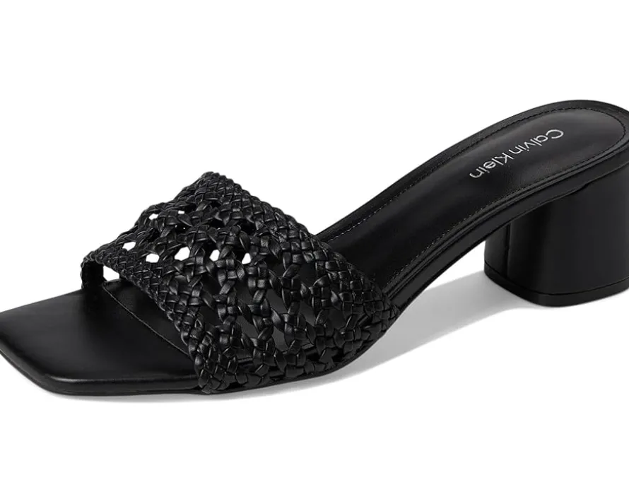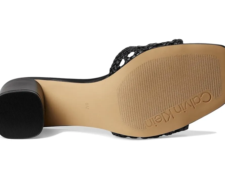 - A study in chic, Calvin Klein® Brianny dress sandals. Designed with a luxe faux leather upper and lining, these sandals exude sleek refinement. The woven detailing adds a touch of texture, while the modern square toe keeps your style on point. A sturdy mid block heel provides all-day comfort and stability, making them the perfect companion for any occasion. Finished with a durable synthetic rubber outsole, they blend fashion with function seamlessly.