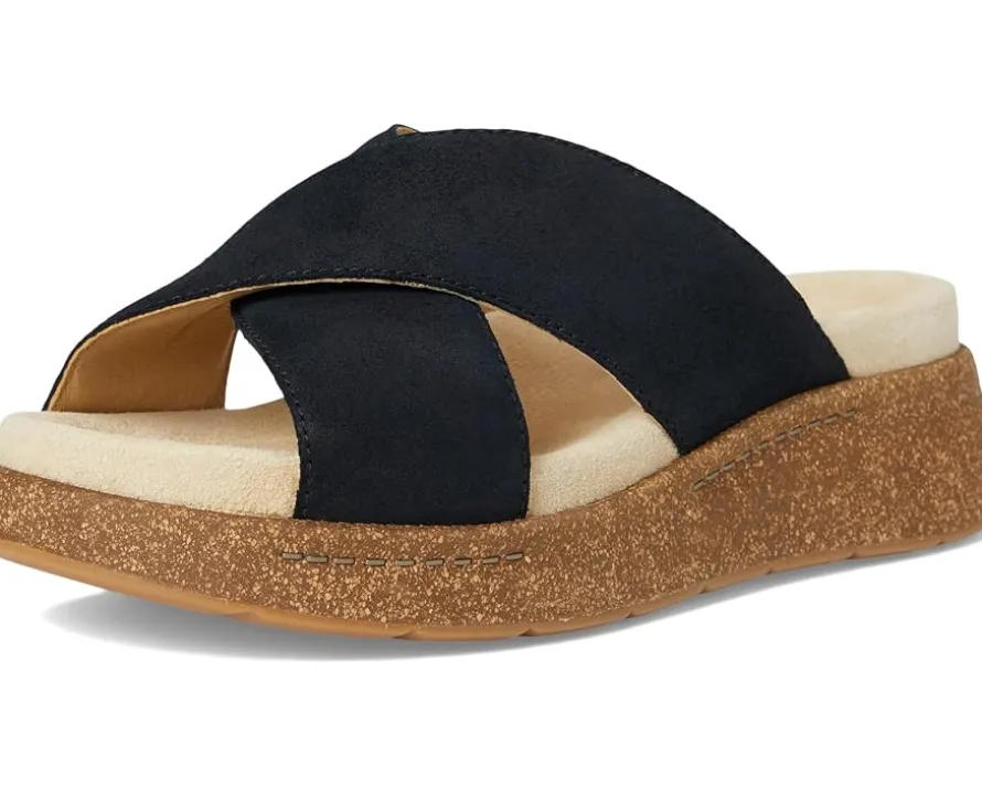 - Power-up your steps wearing the Dansko® Bridget. Crafted from nubuck leathers treated with 3M Scotchgard for stain resistance, and chrome-free leather lining, this pair of sandals features open round toe, cross strap detailing on the vamp, slip-on style, and energy-return BPU footbed with memory foam for added cushion. It comes with chrome-free suede socklining for breathability, and brand detailing on the footbed.
