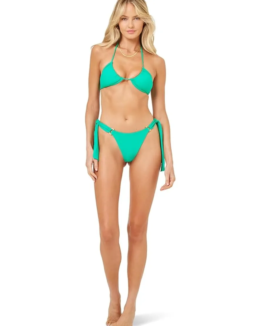 - A must-have for your beach vacations and pool parties, the L*Space® Brielle Top is fully lined for better coverage. This bikini top comes with thick straps with metal D-ring details that offer support. The adjustable tie closure at the back ensures easy on and off. This sleeveless bikini top features an elongated triangle cup design for a stylish appeal. Flaunt your great style and curves wearing this chic top.