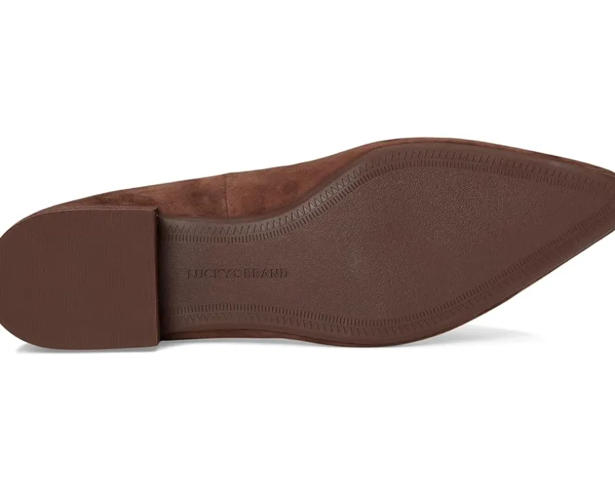 - The Lucky Brand® Brigeet Slingback Mule is designed with a sleek pointed toe and a low block heel. The adjustable buckle slingback strap ensures a secure, customized fit. The footwear is crafted with a suede upper and rubber outsole.