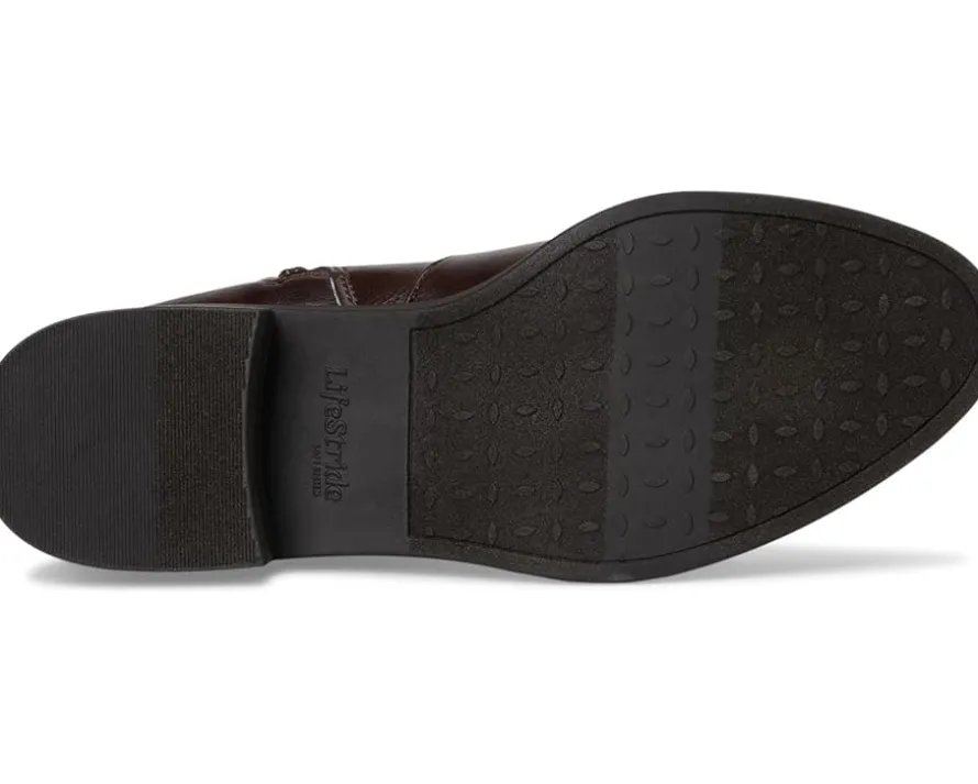 - Sleek and comfortable, the LifeStride® Brighton tall boots with modern design and built-in stretch are a go-to. Crafted with a faux leather upper, it features a rounded toe, zippered side closure, and a decorative ankle strap with metallic ring accent for a touch of edge. The stretch knit back panel ensures a flexible fit, while Soft System® comfort technology delivers all-day cushioning, support, and flexibility.