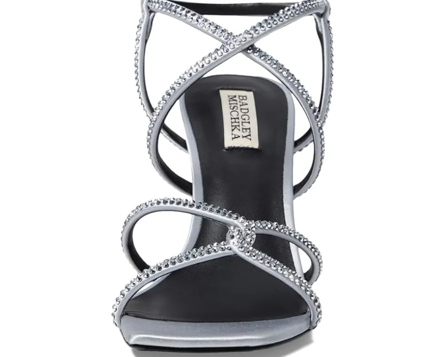 - Show your exquisite fashion statmentby complementing outfits with the Badgley Mischka® Brooke Heels. The ornamented heels are designed with a silk strappy upper, breathable leather lining, and a foam insole for enhanced comfort. It features an ankle strap and buckle closure for easy adjustability.