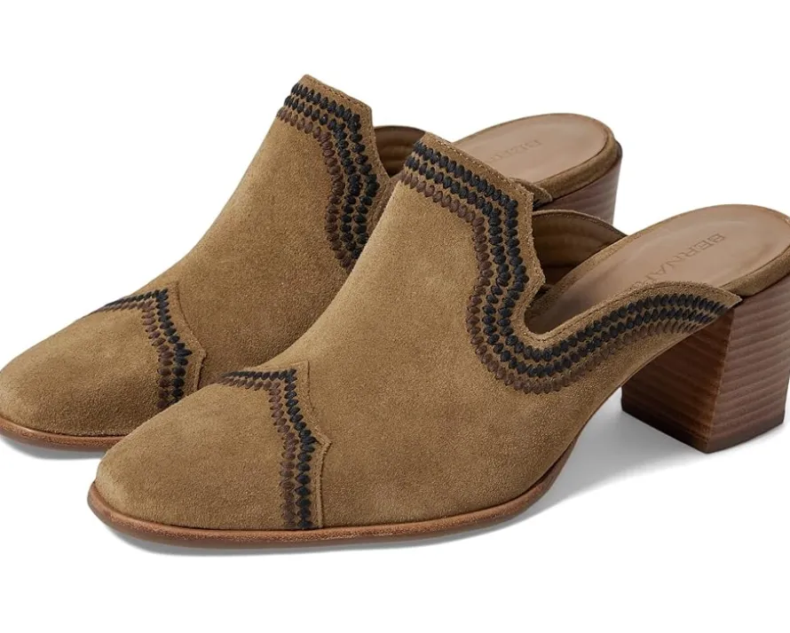 - Sturt with urbane and chic flair wearing the Bernardo® Brooklyn Pumps. The slip-on footwear features leather upper construction with two-tone stitching and block heels for poised perfection.