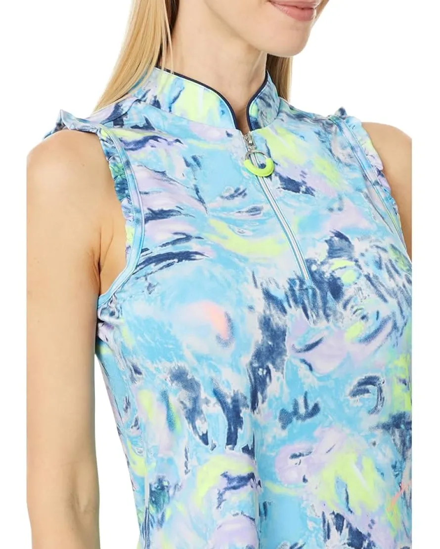 - Stay cool and comfortable on the course by wearing the Jamie Sadock® Brush Sleeveless Top. Featuring a stand-up collar with a half-zip placket, sleeveless style, and piping on top of the collar, this top is perfect for all-day wear. The small ruffle for the sleeve openings adds a playful detail, while the allover print makes a statement on the green.