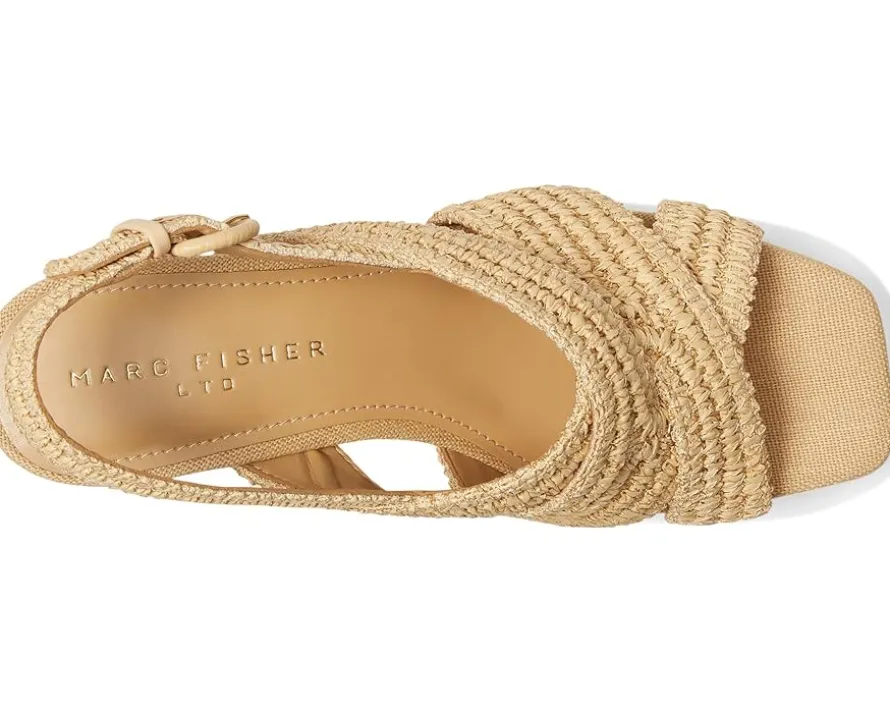 - Impress everyone with your refined style by pairing outfits with the Marc Fisher LTD™ Caddy Sandals. The open square-toe sandals feature a high block heel, adjustable ankle strap, and stylish woven detailing. These are crafted with a polyurethane upper and manmade lining.