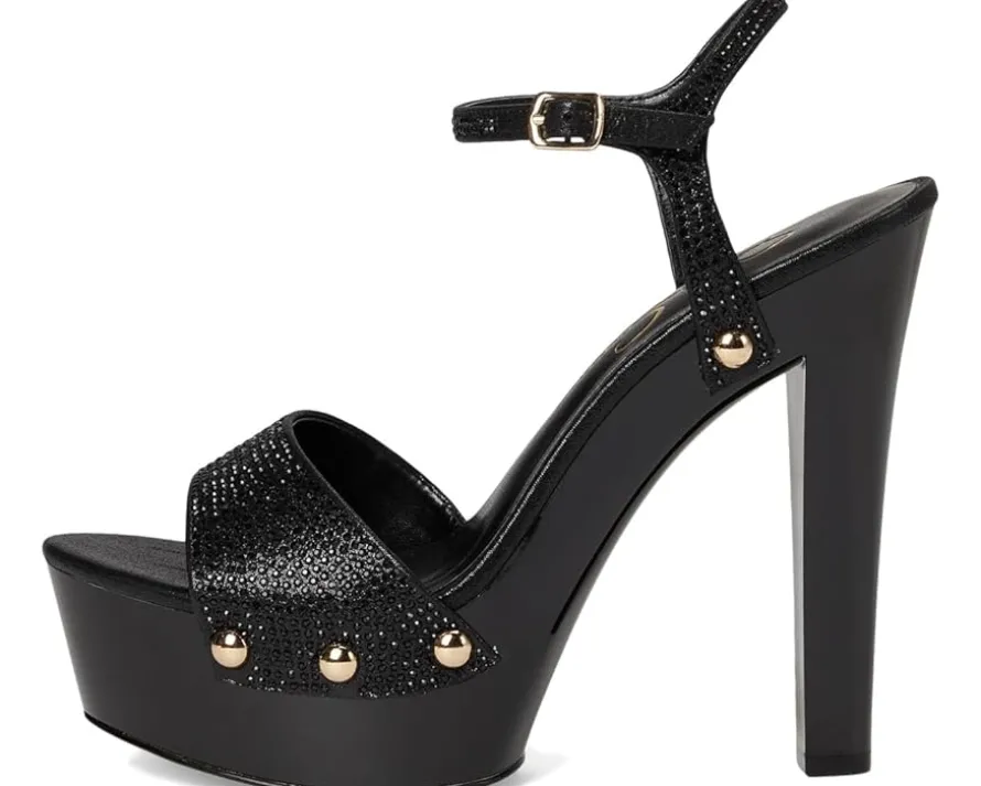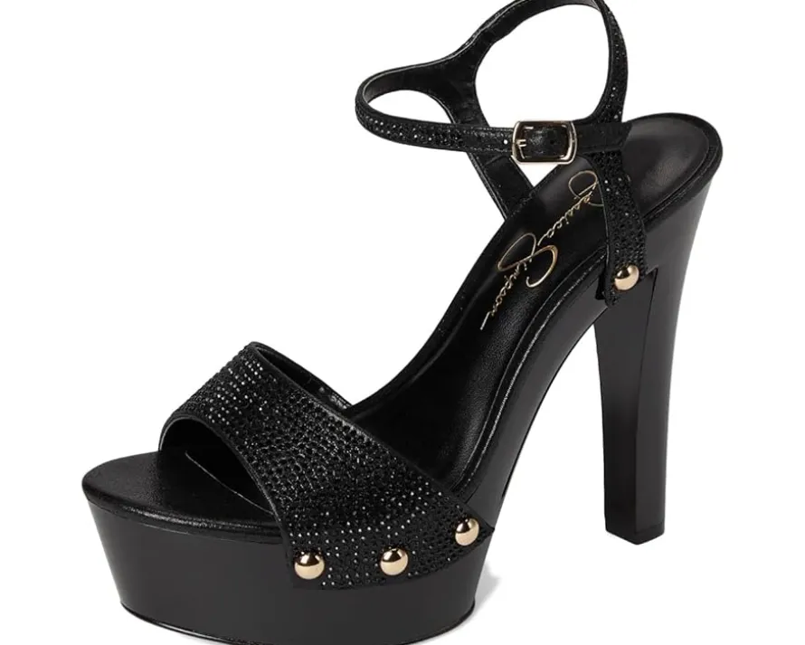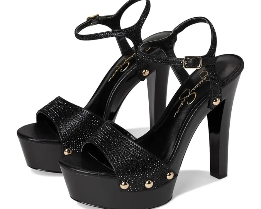 - Hit the floor wearing the classy Jessica Simpson™ Calenta. Crafted from faux leather upper, polyester lining, and insole, this pair of sandals features open round toe, cone heel, ankle strap buckled closure, and brand detailing on the footbed.