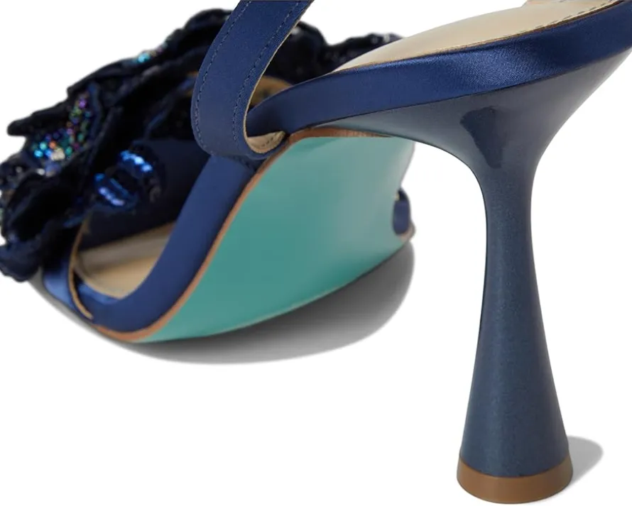 - Step out in floral fashion with the Blue™ by Betsey Johnson Cali sandals. The unique silhouette offers a timeless, stylish look with fun floral appliques. These heeled sandals are made of a rubber insole and polyester lining. The polyurethane upper features floral details and an adjustable ankle strap. From the office to the dance floor, you’ll have a look that’s sure to blossom wearing these floral sandals.