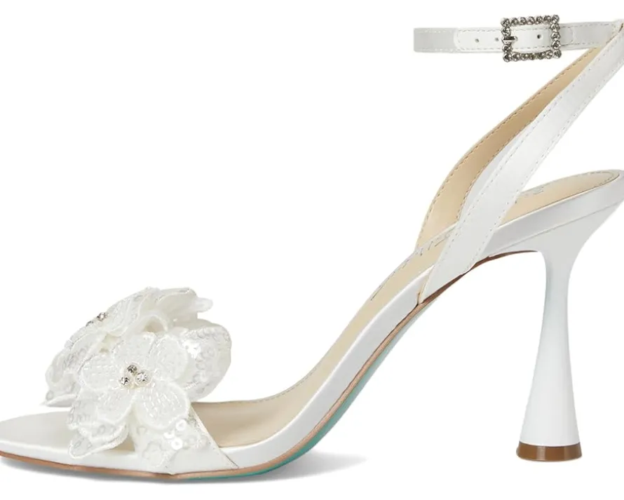 - Step out in floral fashion with the Blue™ by Betsey Johnson Cali sandals. The unique silhouette offers a timeless, stylish look with fun floral appliques. These heeled sandals are made of a rubber insole and polyester lining. The polyurethane upper features floral details and an adjustable ankle strap. From the office to the dance floor, you’ll have a look that’s sure to blossom wearing these floral sandals.