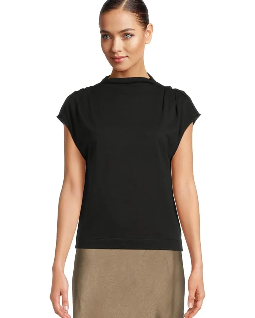 - The Lilla P™ Cap Sleeve Mock Top is the perfect blend of polish and ease. Made from our soft cotton and modal slub fabric, this style features subtle pleats at the shoulder for added detail and a refined touch. The wedge shape creates a relaxed blouson fit, giving it just the right amount of volume. Designed to be worn on its own or layered under a blazer, this versatile pull-on style top transitions effortlessly from day to night.