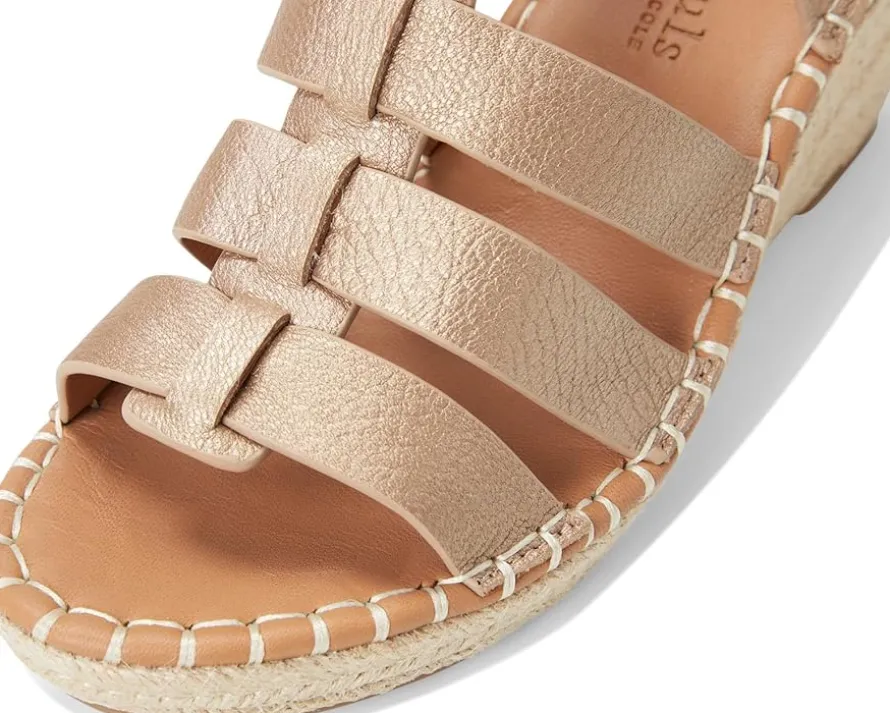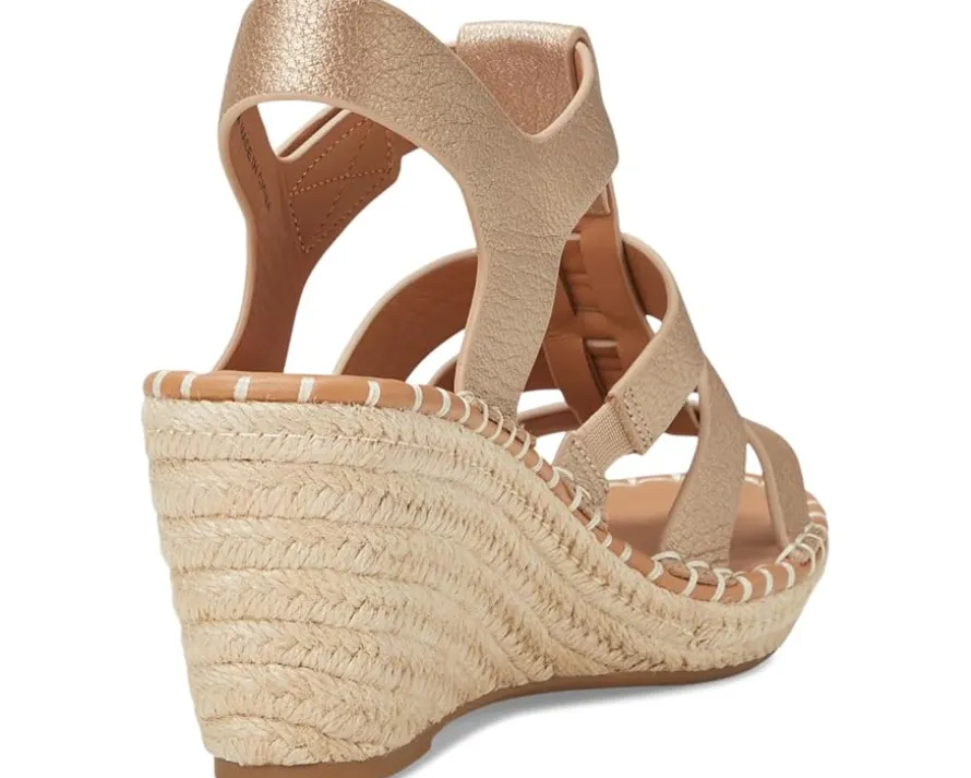 - The Gentle Souls® by Kenneth Cole Capelin sandals feature an espadrille wedge heel and a convenient hook-and-loop ankle strap closure for a secure fit. These sandals utilize a PORON® multi-layered cushioning system, providing exceptional support and comfort throughout the day. The breathable leather lining ensures your feet stay cool and comfortable.