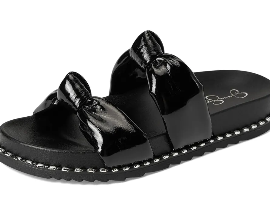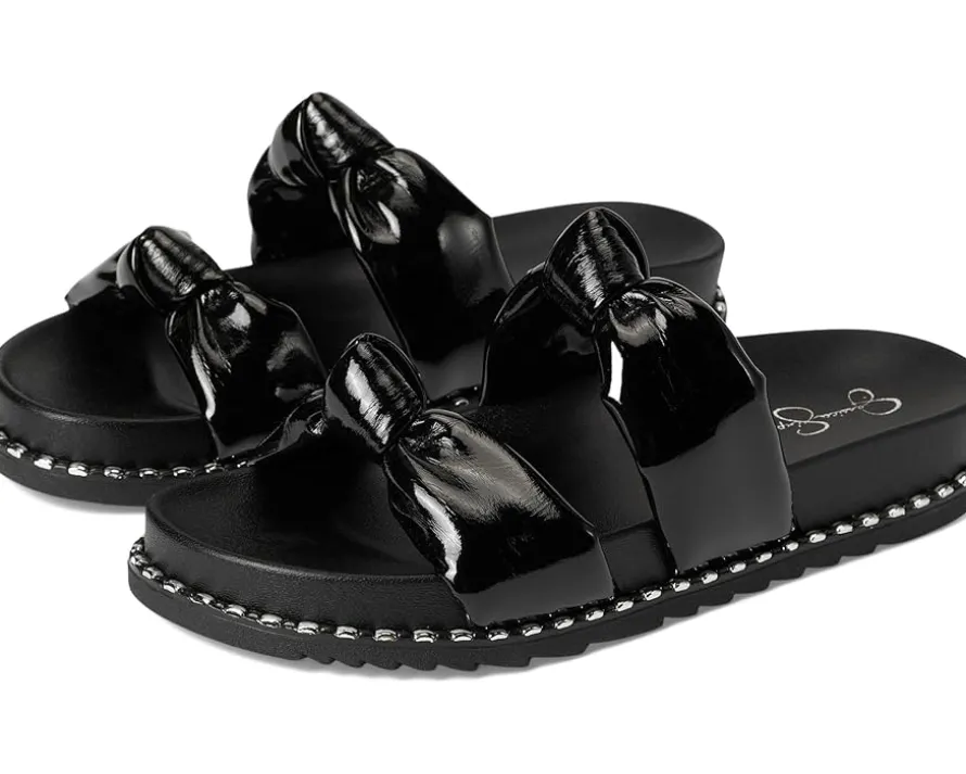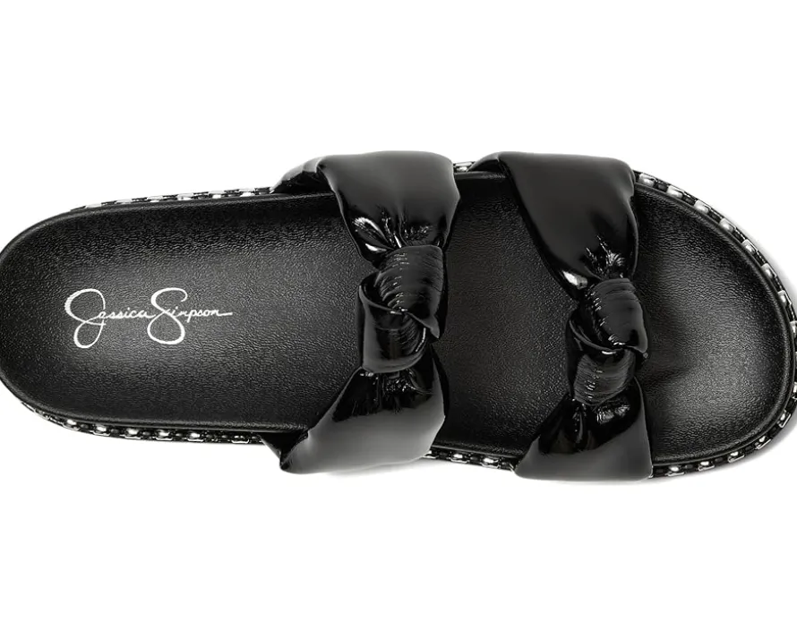 - The Jessica Simpson™ Caralyna Studded Knot Sandals have knotted vamp straps and glossy midsole studs that amplify the modern appeal of a slide sandal grounded by a contoured footbed and textured rubber outsole. These slide sandals are made of a cotton upper, polyester insole, and polyester lining.