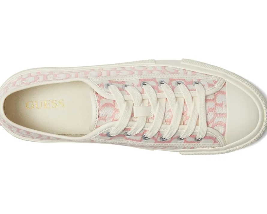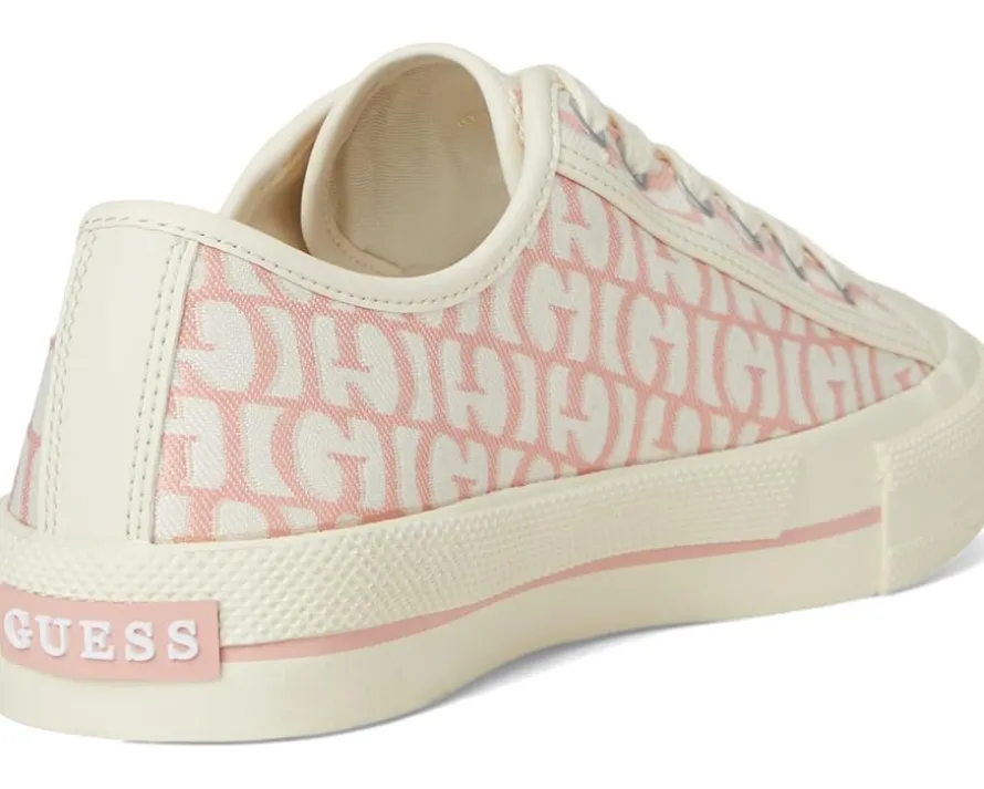 - Repeating G logo brands this casual sneaker. The Guess® Carey jacquard low-top sneaker is set on a rubber sole and laces up for a timeless effortless look. Est. 1981, Guess is a global lifestyle brand and a symbol of a young, adventurous lifestyle.