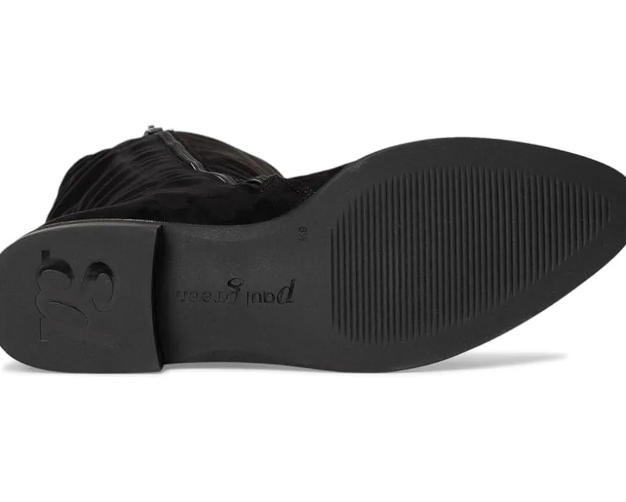 - Take every step with confidence and grace wearing the Paul Green™ Carin Boots. This classic suede boot goes with anything. It features a flat block heel with stretch suede on the calf for a perfect fit. It hits right at the knee and has an inside zipper closure. for easy on-off.
