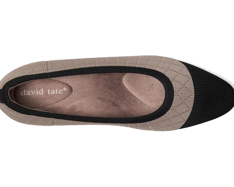 - Introducing the David Tate® Carla shoes, sophisticated dress pumps that seamlessly combine style and comfort. Crafted from luxurious quilted two-tone fabric, these slip-on shoes exude elegance and versatility, making them perfect for any occasion. With graceful block heels, these shoes offer just the right amount of lift to enhance your silhouette without sacrificing stability. The removable cushioned suede insole provides exceptional arch support, ensuring that your feet remain cozy and supported throughout the day. They are made of a polyester upper and nylon lining for a more comfortable fit. Their padded heel pads offer a better, more proper fit. Step into these low-top heeled shoes and experience a perfect blend of fashion and comfort, allowing you to look your absolute best while feeling great.