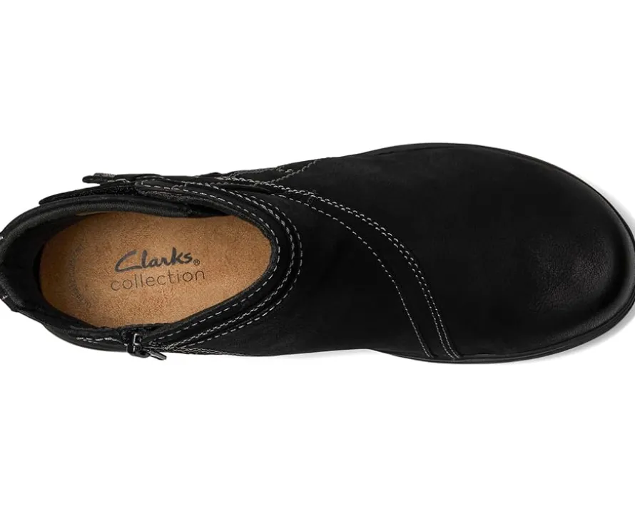 - Step out in style with the Clarks™ Carleigh Style boots. Made with luxurious leather upper and breathable mesh lining, these boots are as comfortable as they are fashionable. The rubber insole provides all-day cushioning, while the eye-catching detail and zippered side closure add a modern twist. Finished with round toes for a classic touch, these boots are versatile enough to pair with any outfit.