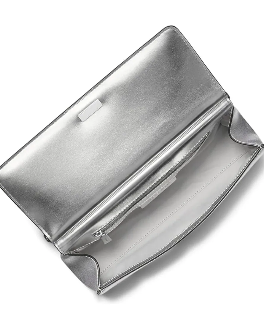 - Complement your chic style with the MICHAEL Michael Kors® Carmine Medium East West Clutch. Crafted from leather, this clutch offers a magnetic closure with an interior zipper pocket and a detachable chain link strap.