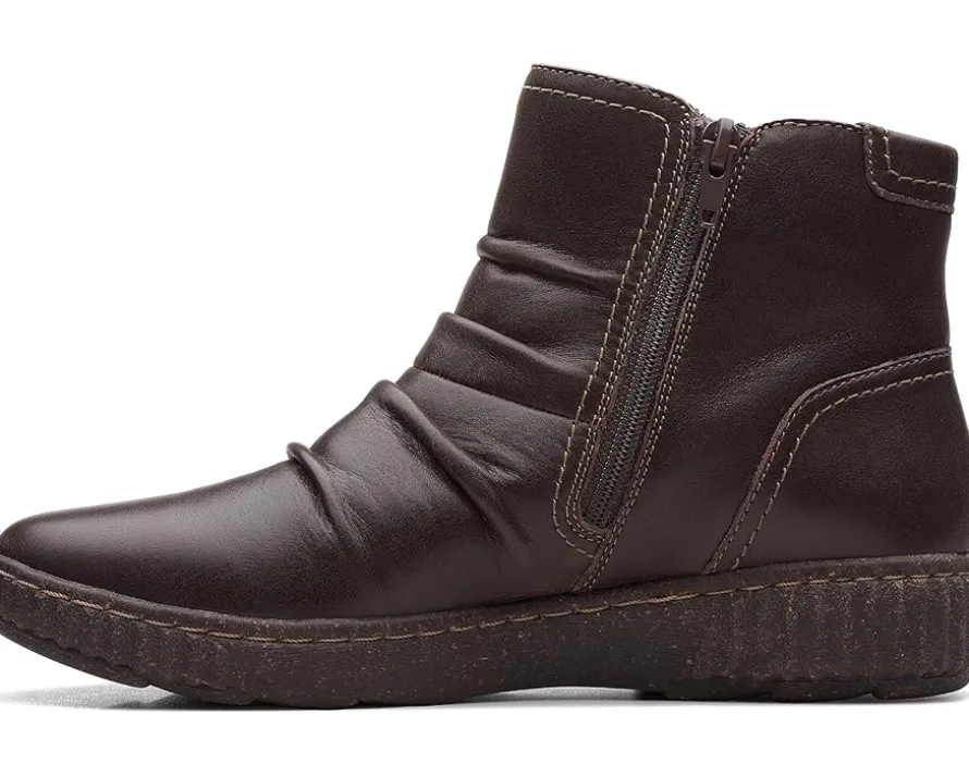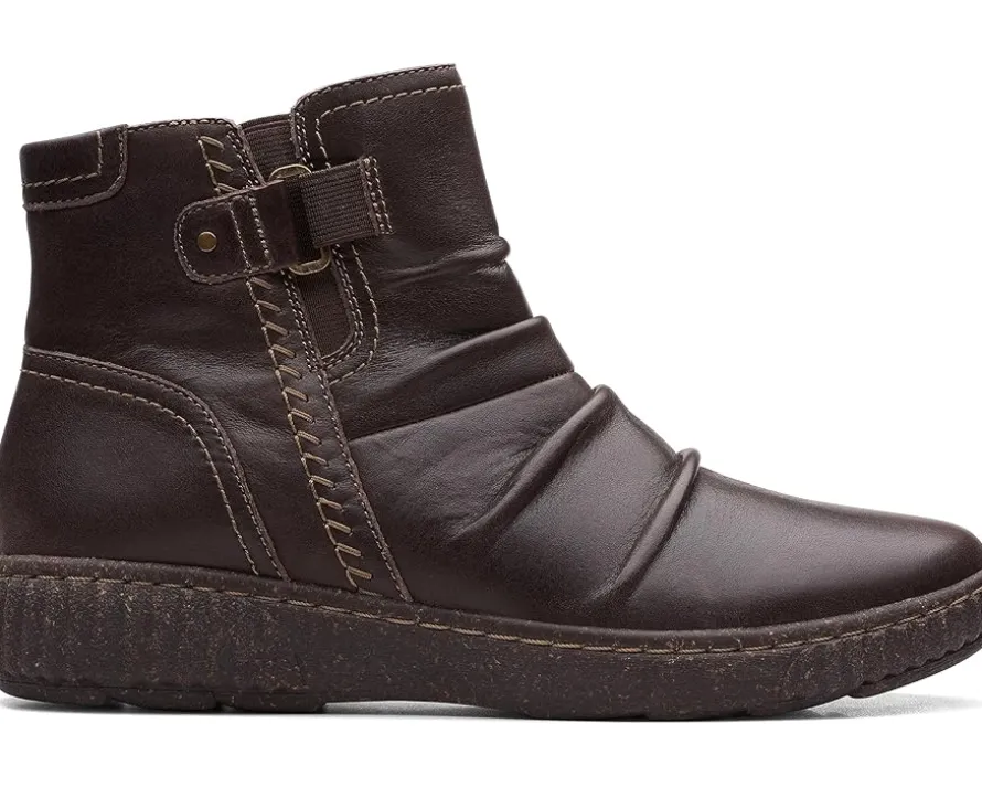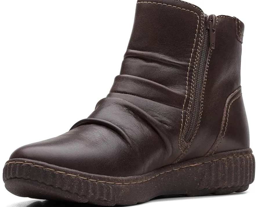 - The Clarks™ Caroline Orchid boots will be an instant favorite in your modern-casual collection. The stylish boots feature a leather upper with stitched details and ultimate comfort 5mm PU foam footbed that delivers lasting cushioning. The boots have an ankle-length silhouette and a round toe design.