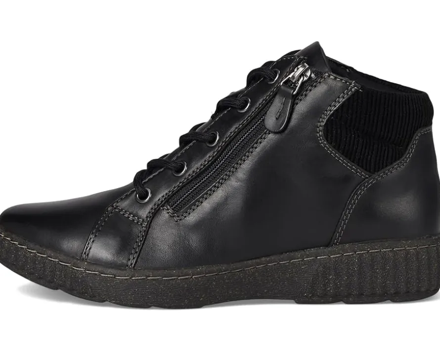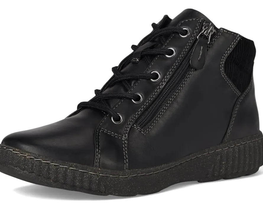 - Zippered side closure and lace-up panels.