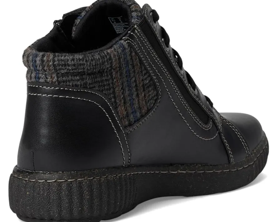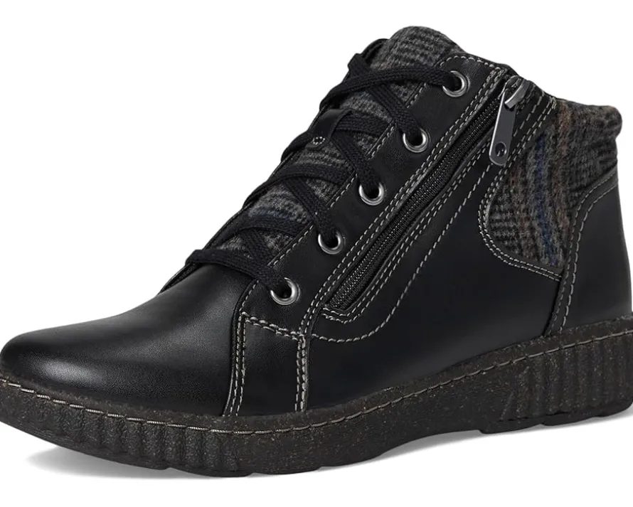 - Smooth premium leather meets cozy winter-ready textiles to create Clarks™ Caroline Spice, the ankle boot you’ll pair with all your casual looks this season. Calling on a lace fastening and a handy side zip, it offers easy foot entry and an adjustable fit, while a dependable, slip-resistant sole lends unbeatable traction and flex.