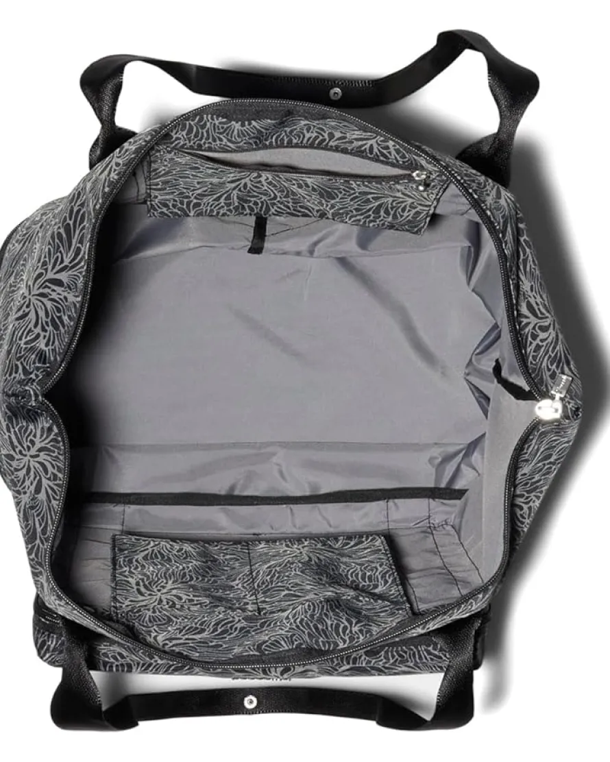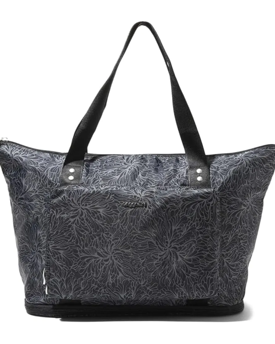 - Travel in style and ease by carrying the Baggallini® Carryall Expandable Packable Tote. Crafted with a lightweight nylon construction, this water-resistant tote has an expandable design. Designed with a built-in travel sleeve, it effortlessly slips over your suitcase handle, making your journey a breeze. The zippered closure adds an extra layer of security, while the dual grab handles ensure comfortable and convenient carrying.