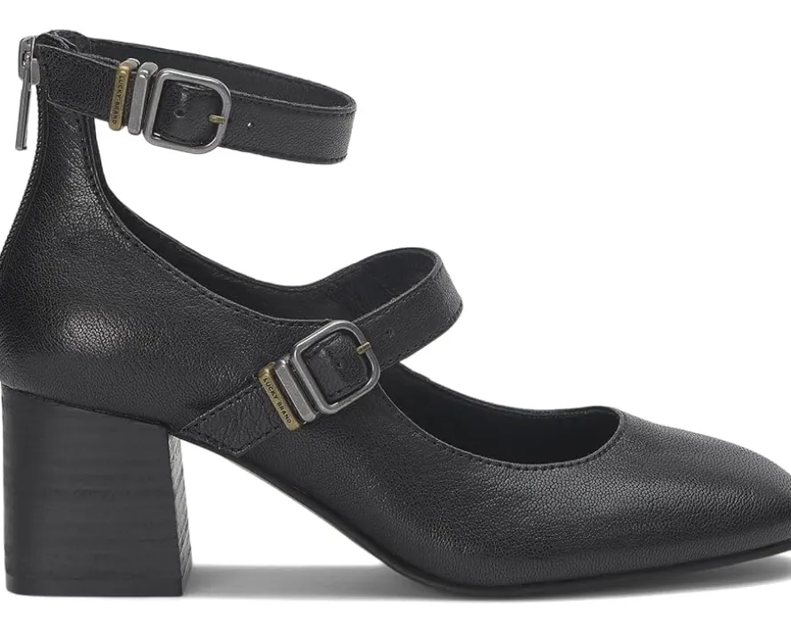 - Detailed with multiple buckled straps, the Lucky Brand® Cemli is the perfect winter dress shoe. This pump features a stack block heel with zippered closure at the backstrap and round toe silhouette.