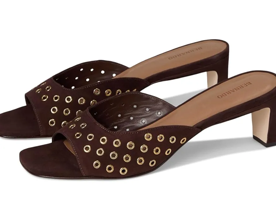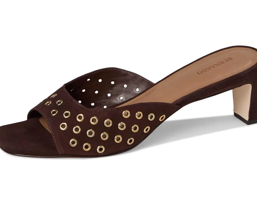 - Be bold. This open-toe Bernardo® Cenza Grommet mule with structural clean lines combined with the edginess of all over grommets makes for a powerful statement. Wear her on a date night or out with the girls. Crafted from leather upper, lining, and insole, this pair of sandals features open square toe, block heel, and brand detailing on the footbed.
