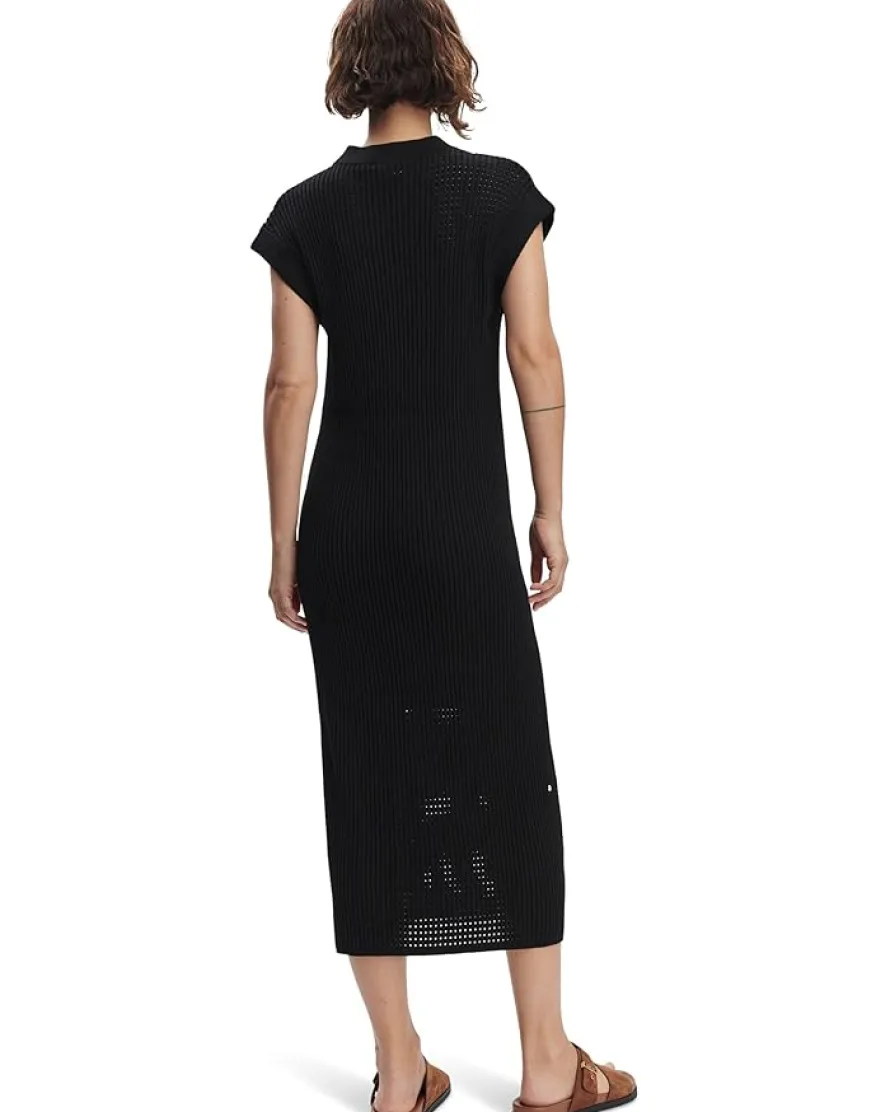 - Knitted in a fine cotton rib with pointelle mesh detailing, this midi-length dress offers a relaxed fit for all-day comfort. With its classic crew neck and dropped shoulders, it’s the ideal choice for effortless summer chic.