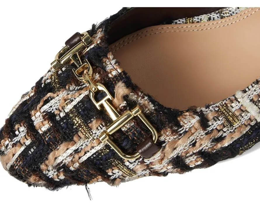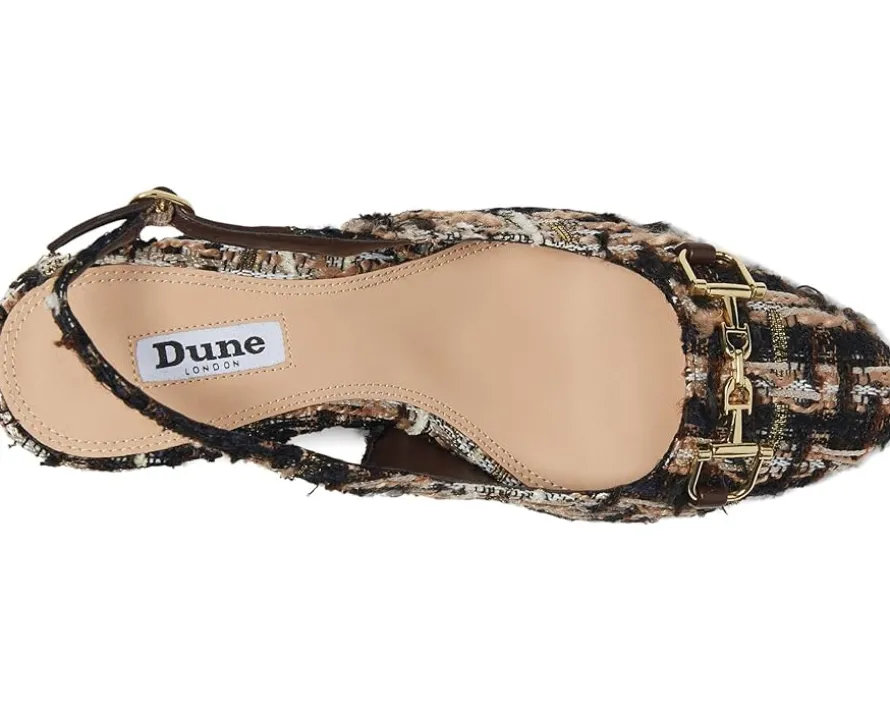 - Bring an instant dose of polish and sophistication to your attire donning the Dune London™ Choiced Dress Heels. Timeless and effortlessly comfortable, these shoes feature a textured fabric upper with an almond toe and a sleek metallic branded snaffle trim detailing at the vamp. Elevated by a sturdy block heel and secured with an adjustable buckle on the slingback strap, the footwear equally parts style and comfort.