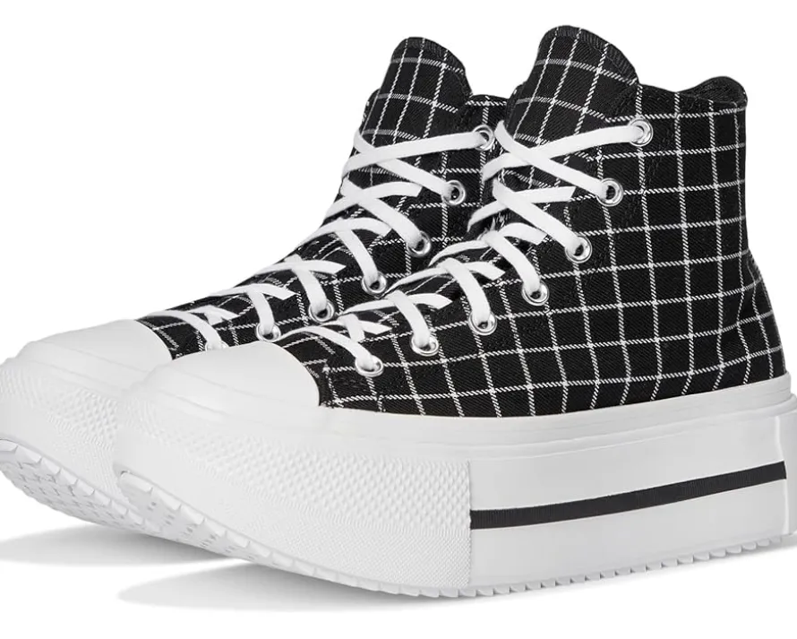- The Converse® Chuck Taylor All Star Lift Double Stack Platform Plaid is your go-to for bold moves and bigger statements. With its iconic high-top silhouette reimagined in timeless plaid, these kicks elevate your look, literally. The double-stacked platform adds height without the heft, thanks to an ultralight EVA insole that cushions every step. A durable canvas upper pairs with a polyester lining for breathable comfort, while the classic lace-up closure and rubber outsole deliver that signature Chuck Taylor grip and attitude. Whether you’re making the rules or rewriting them, these high-tops blur the lines between rebel and refined.