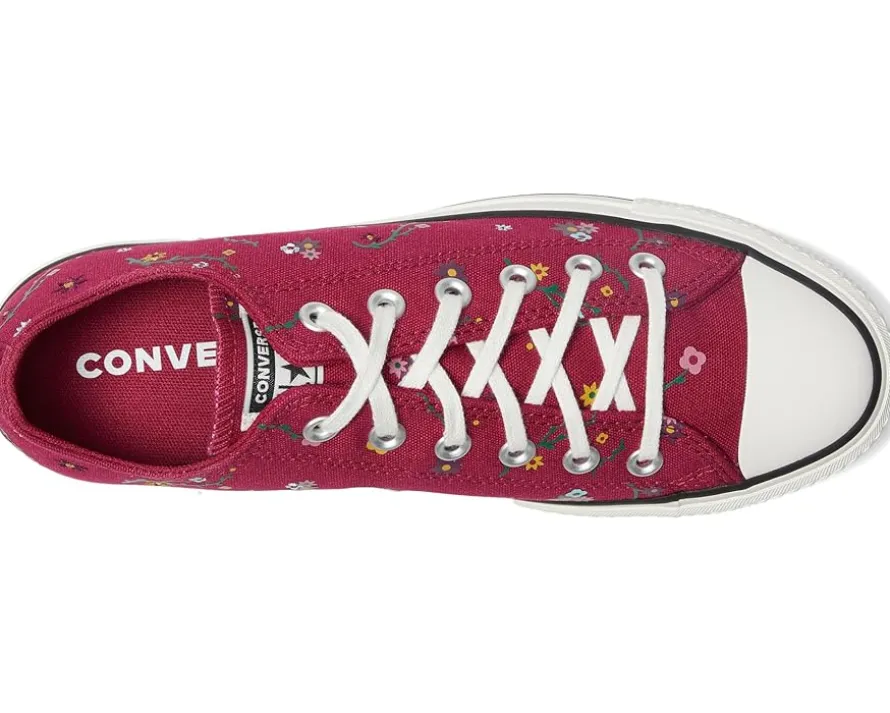 - With clashing prints and colorful embroidery, the Converse® Chuck Taylor All Star Lift Platform Floral Patchwork sneakers tap into the grannycore trend with the Chuck Taylor style. Their Ortholite™ EVA insole and polyester lining keep your feet cool and comfortable. The canvas upper features a lace-up design for a secure fit. These lace-up sneakers are perfect to style up your casual looks and outfits.