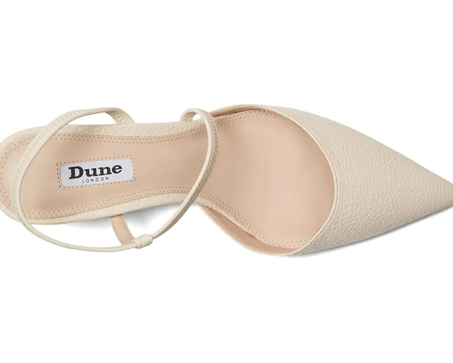 - Incorporating key micro-trends into a classic silhouette, the Dune London™ Citrus shoes strike the ideal balance between contemporary and timeless elegance. Expertly crafted in-house with a suede upper, these heeled shoes are cut for a chic pointed toe design, while the vamp is accented with skinny asymmetric strap detailing. These shoes rest on low-flared heels that are sprayed for a directional matte effect. The EVA insole and lining make them a comfortable choice. From business meetings to fun parties, transition effortlessly wearing these suede shoes.