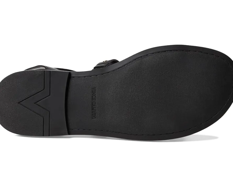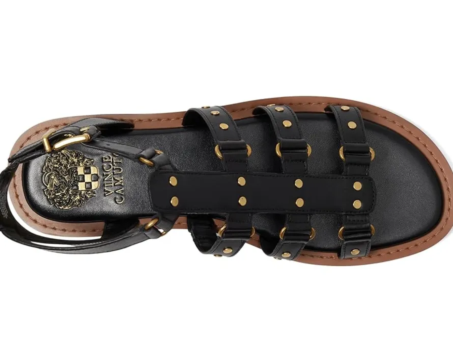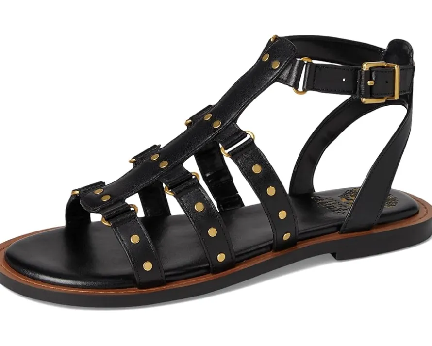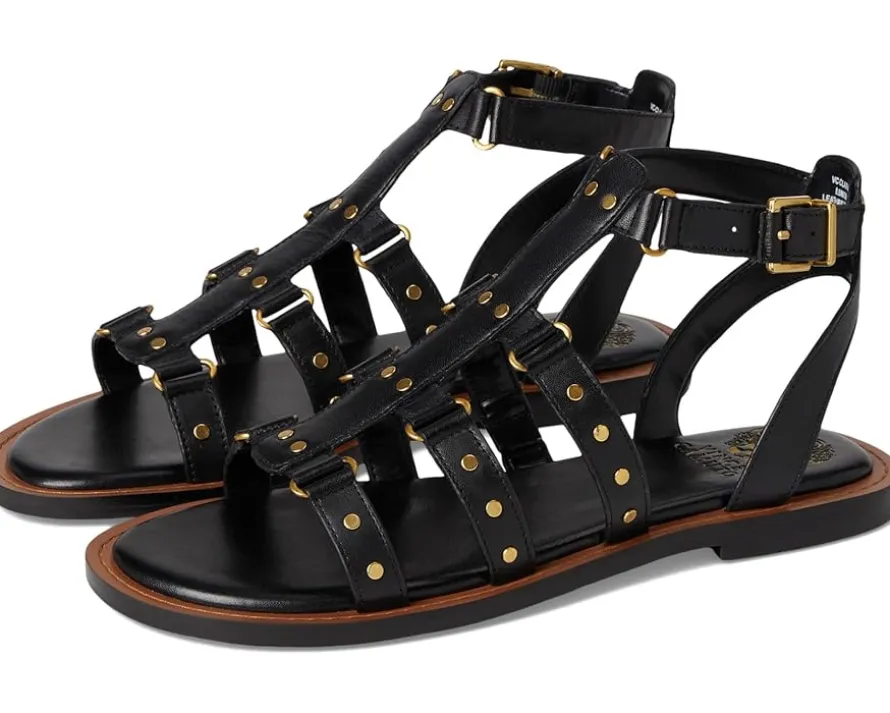 - Styled with a strappy design with metal rivets, the Vince Camuto® Claira Gladiator Flat Sandals are perfect to pair with different outfits and styles. The leather upper features an ankle strap with an adjustable buckle closure and a zippered back closure for easy wear. These flat sandals are made of a padded footbed and synthetic lining.