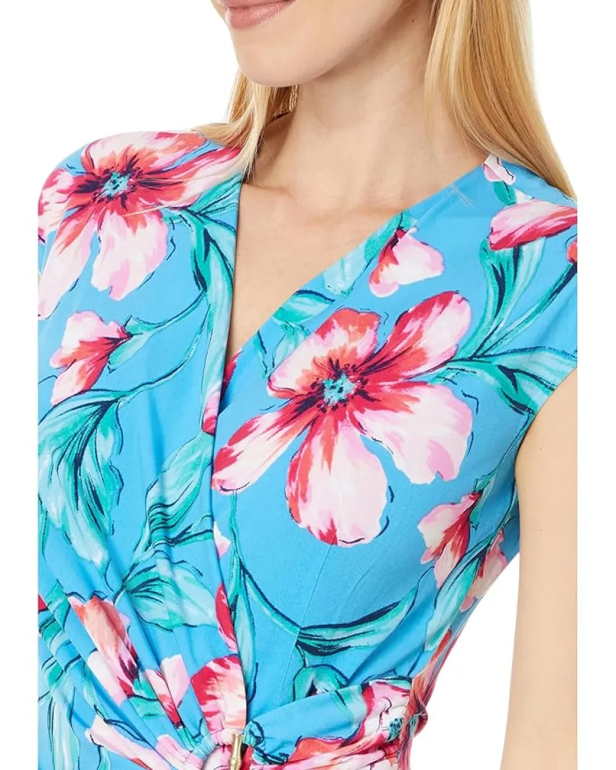 - Blooming with confidence in the Tommy Bahama® Clara Stripe Barts Blossom Dress. Featuring a chic criss-cross neck and a flattering wrap design with a touch of metallic flair at the waist, this knee-length, wrinkle-resistant dress with short sleeves and a hint of stretch ensures you stay stylish and comfortable on the go.