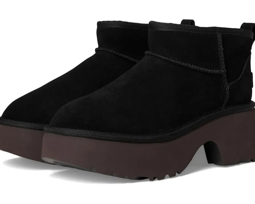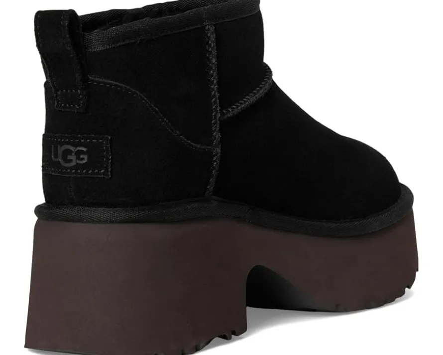 - Lean into sky-high vibes with the Classic Ultra Mini New Heights. Designed with a suede upper, UGGplush™ lining, and a bold cropped shaft. This Classic Ultra Mini gets a bold new update with a chunky notched platform and a 3″ heel.
